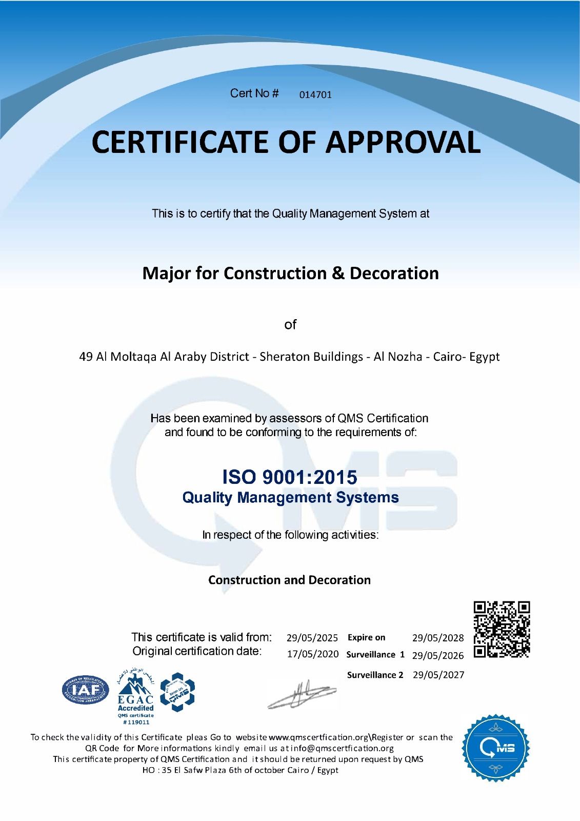For instance, Major Construction in Egypt, with over 28 years of experience in executing large-scale projects, understands that maintaining quality, safety, and time commitments can only be achieved through management systems aligned with ISO certifications. This dedication has enabled the company to successfully deliver projects in banking, residential, and administrative sectors, making it one of the leading construction firms in the Egyptian market